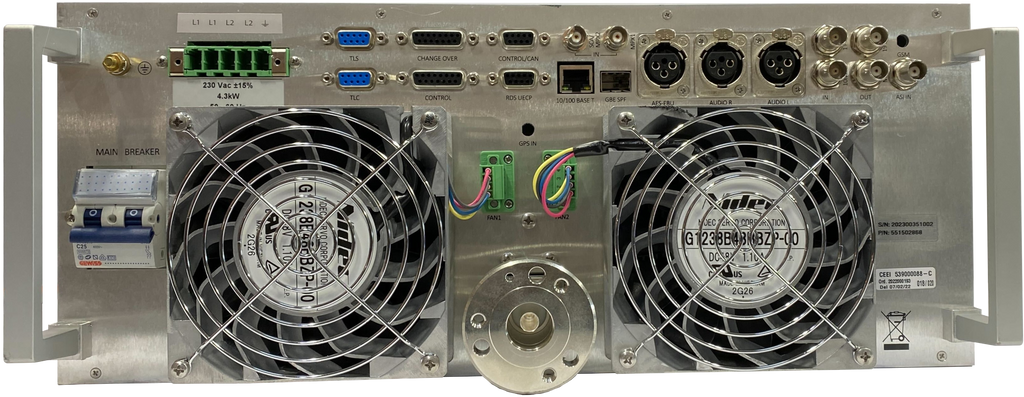 | Flags: | Carrier on/off, amplifier overdrive, DC pallet voltage, VSWR, RF input level, temperature, AGC/manual status |